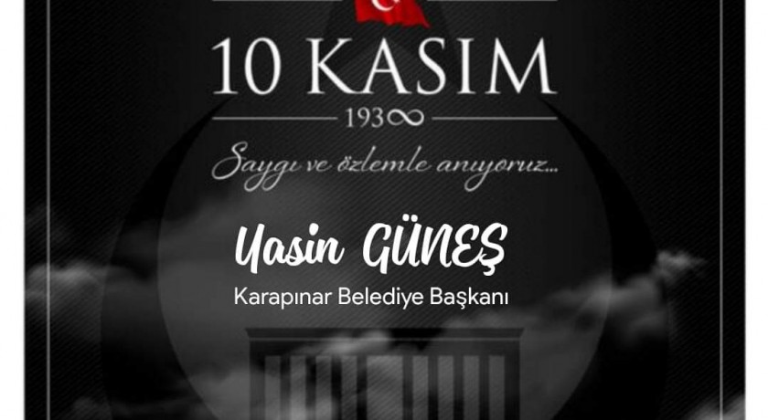 Güneş "Atatürk'ü Saygı ve Minnet İle Anıyoruz" Bugün Türkiye Cumhuriyeti'nin kurucusu Gazi Mustafa Kemal Atatürk'ün ölümünün 86'ıncı ölüm yıldönümü, Atatürk'ü saygı özlem ve minnetle Ulus olarak anıyor ve özlüyoruz. Gazi Mustafa Kemal Atatürk'ün ölümünün 86'ıncı yılı dolayısıyla bir mesaj yayınlayan Karapınar Belediye Başkanı Yasin Güneş "Gazi Mustafa Kemal Atatürk'ü Saygı ve Minnet İle Anıyoruz" dedi. Güneş mesajında "Gazi Mustafa Kemal Atatürk, Kurtuluş Savaşımızı zaferle süsleyen kahraman ordumuzun komutanı ve bu topraklardaki son Türk Devleti’ni kuran kadronun lideridir. Bu vesileyle ülkemizin kurucusu Büyük Atatürk’ü, Hakk’a yürüyüşünün yıldönümünde saygı, minnet ve rahmetle anıyoruz" dedi.